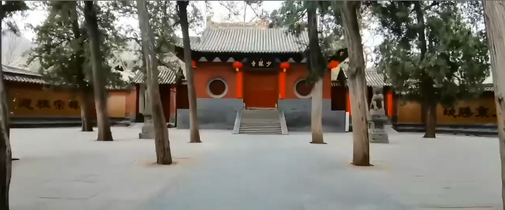 少林寺山门,为少林寺常住院大门,由正门与东、西二掖门组成。门首正中悬长1.93米,宽0.9米的清康熙四十三年(1704)御书的黑底金字“少林寺”匾额,中上方刻篆书“康熙御书之宝”六字印章。山门前有一对清朝雍正十三年(1735)雕刻的石狮,狮高1.67米。石狮下为1.75米高的雕花须弥座。